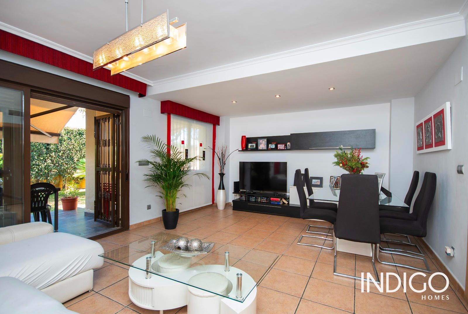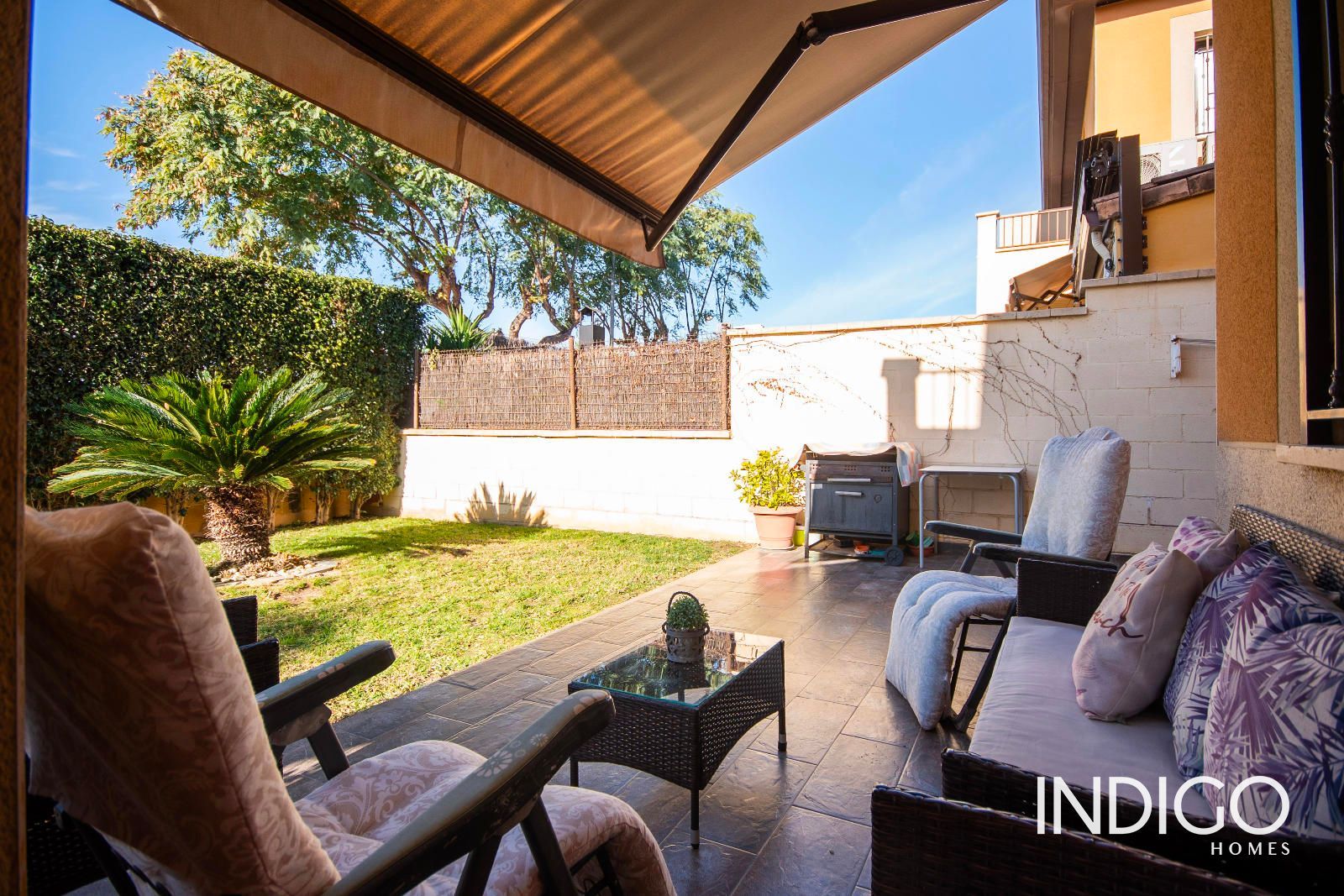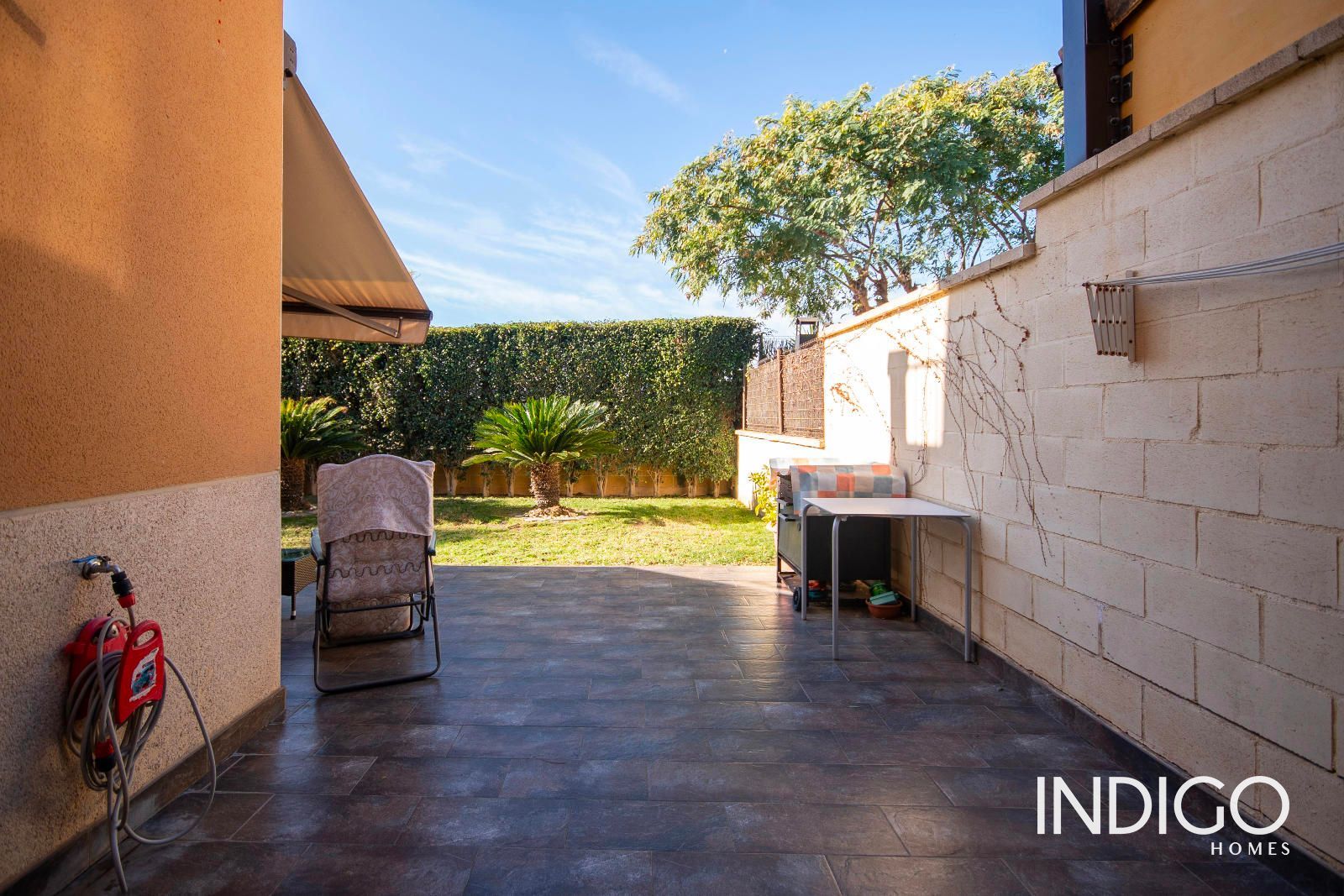 Am hinteren Teil des Hauses öffnet sich ein großes, sehr helles Wohnzimmer, dominiert von einem großen Fenster, das Zugang zur überdachten Veranda gibt, ausgestattet mit Markise, und verbunden mit dem Gartenbereich. Ein perfekter Ort zum Entspannen, Frischluft genießen oder eine Chill-out-Zone schaffen.